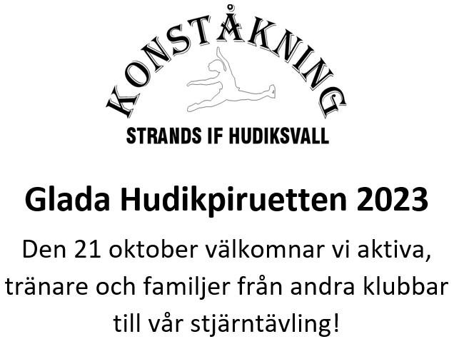 Vi hälsar 95 åkare från Hälsingland, Gästrikland, Dalarna och Medelpad varmt välkomna till vår stjärntävling Glada Hudikpiruetten HT 2023!